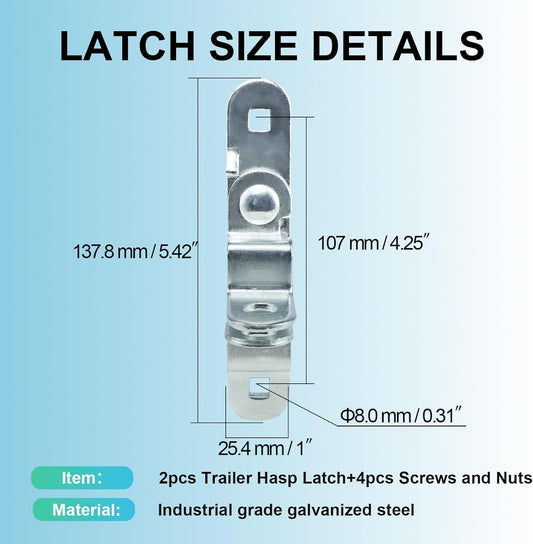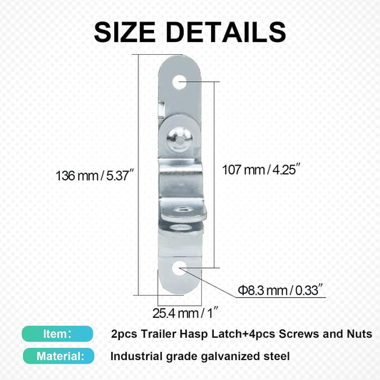 Cargo Trailer Door Latch, Round Screw Holes (4.25 inch Hole Spacing, 2 Pack)