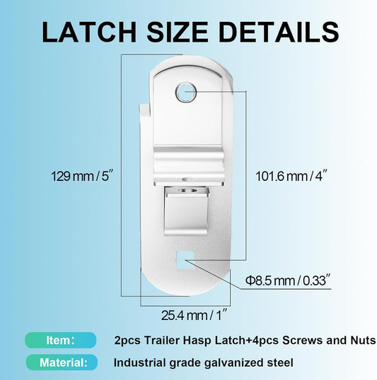 Cargo Trailer Door Latch, Round Screw Holes (4 inch Hole Spacing, 2 Pack)