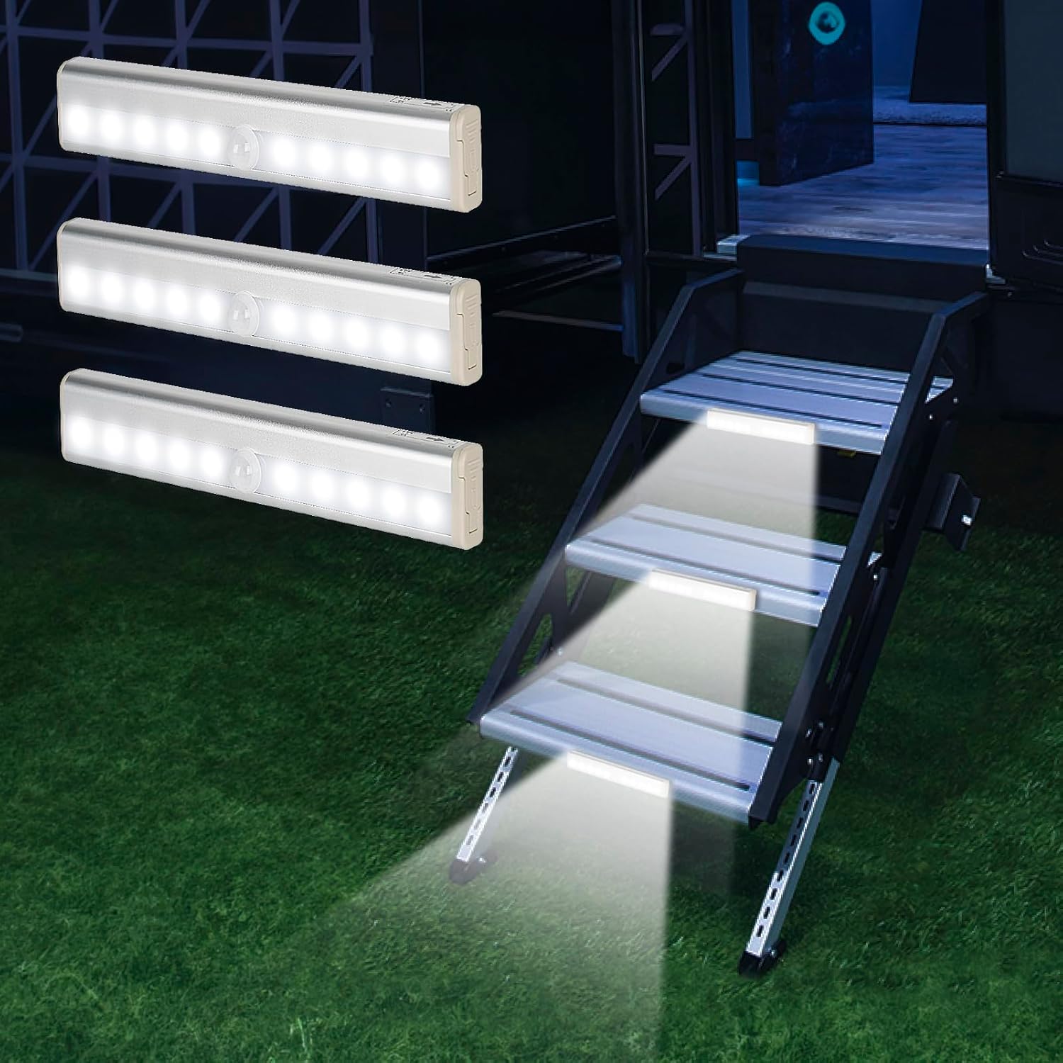 - Bright and Eye Friendly: Our camper step lights made with 10 high-quality LED beads, our magnetic motion sensor lights are super bright yet gentle on the eyes. They're perfect for a variety of places with different lighting needs, and can even be used as an emergency light thanks to their magnetic strip and battery operated design